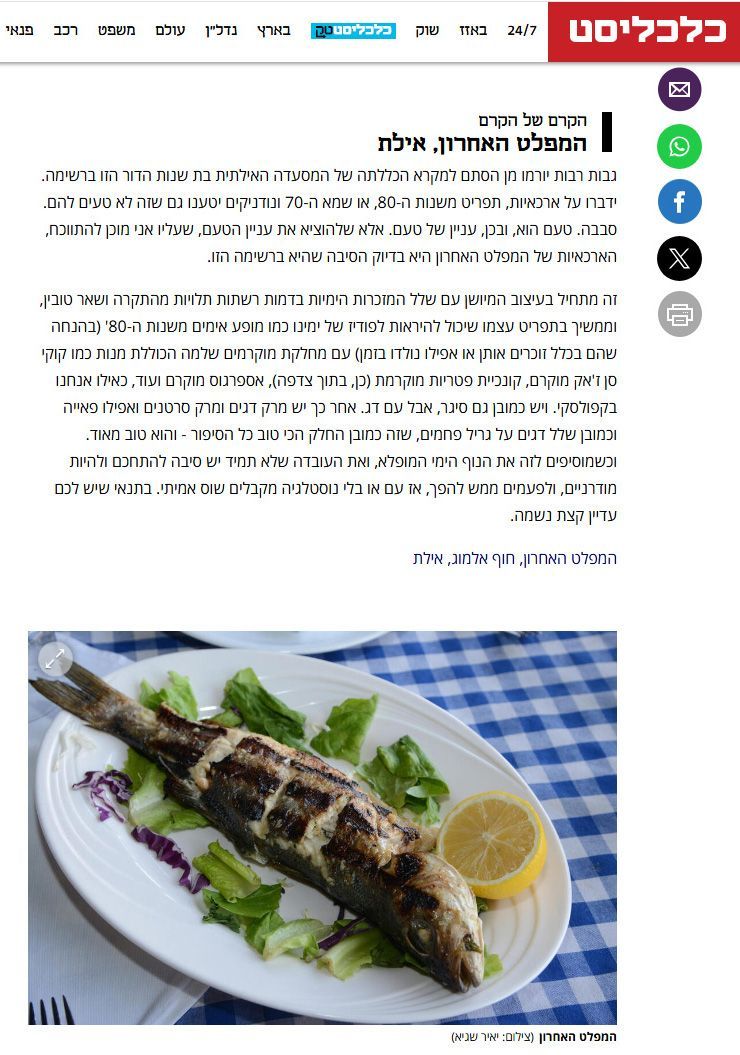 מתוך "כלכליסט". כתבה על מסעדות הדגים הטובות בישראל